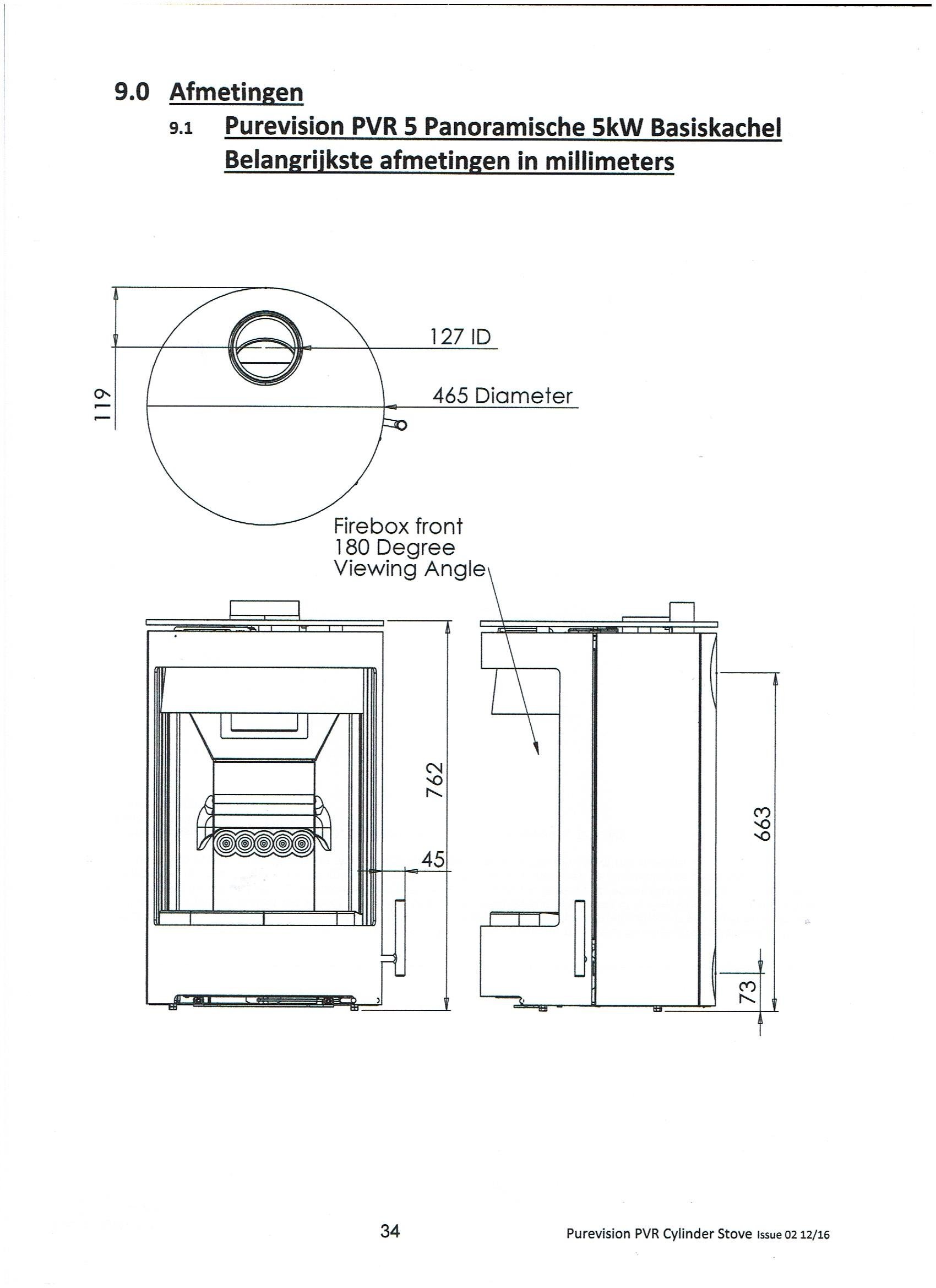 LET OP: Deze houtkachel heeft standaard een aansluiting met een diameter van 125 mm. Maar met een verloop kan dit toestel eenvoudig op een kanaal van 150 mm worden aangesloten.