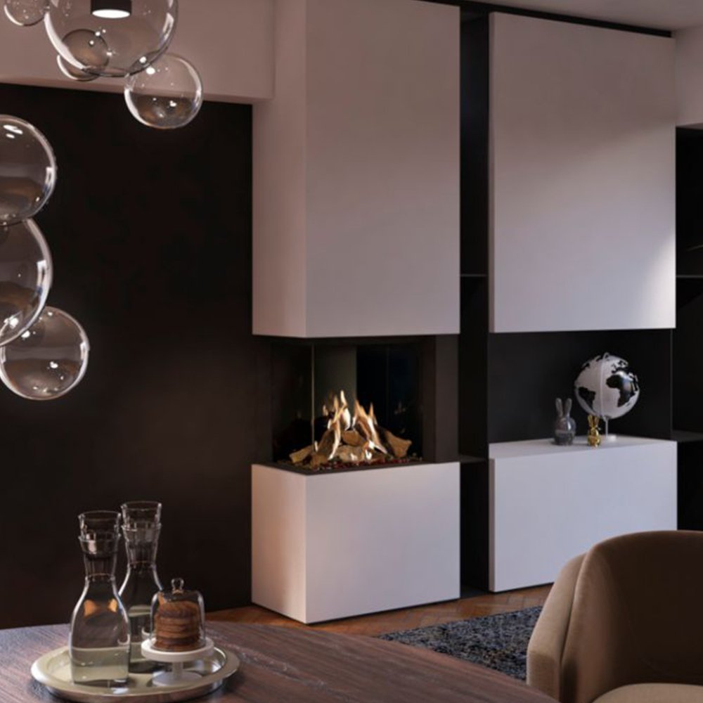 Met de Maestro serie slaat DRU een hele nieuwe en vooral mooie weg in. Het is Dru namelijk gelukt om een prachtige haard op de markt te brengen waarvan u elk seizoen genieten kunt! Deze hoekhaard is voorzien van de Dynamic Flame Burner. Door de realistische en bedachtzame positionering van de houtstammen, is het vuurbeeld van deze gashaard nagenoeg niet meer van echt vuur te onderscheiden.