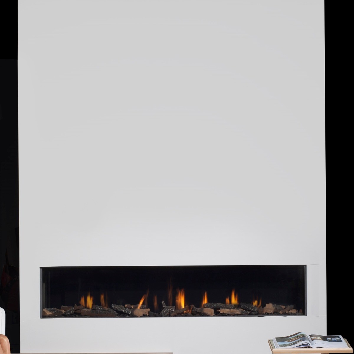 De breedste haard ter wereld! Althans voor wat de gesloten gashaarden betreft. Nooit vertoond, een gesloten gashaard met een 'raam' van twee meter veertig lang!