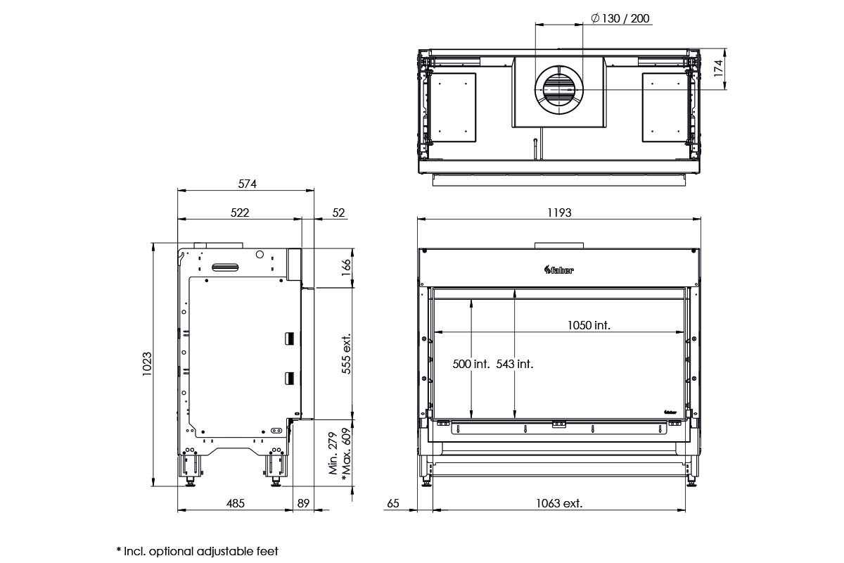| Rookgasafvoer (diameter) | 130/200 millimeter |