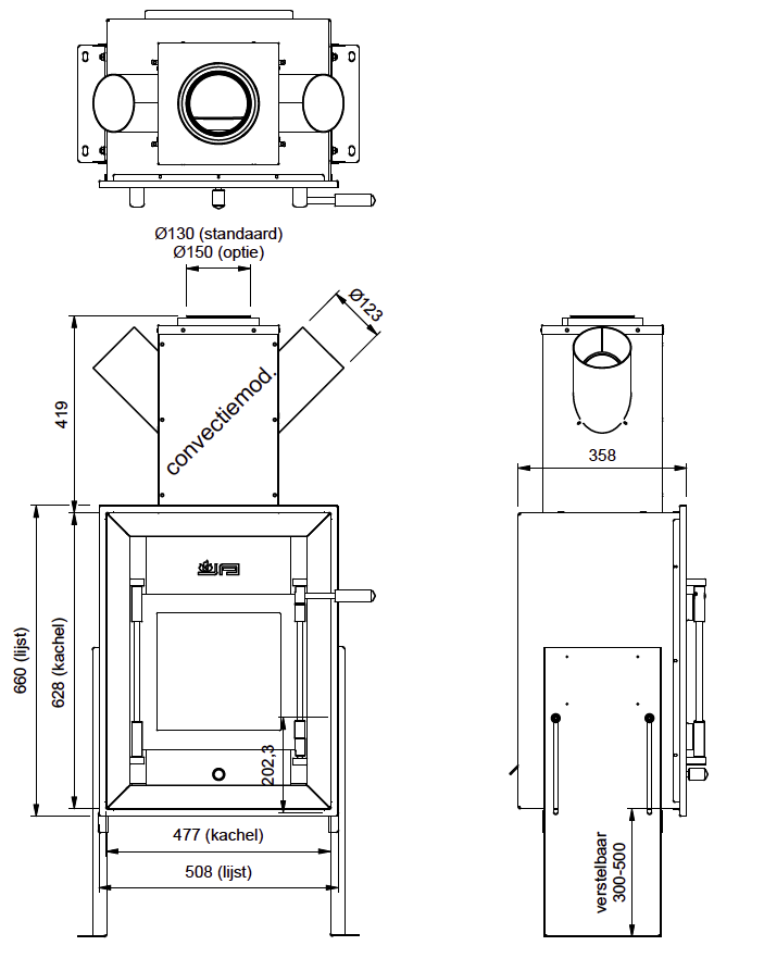 De JAcobus 6 Kwadraat inbouwhaard front is, net zoals de rest van de JAcobus kachels, een strak model dat goed tot zijn recht komt in een moderne woning. De haard is uitgerust met verstelbare poten waardoor u zelf kan bepalen op welke hoogte de haard wordt ingebouwd, dit kan variëren van 350 tot 550 mm. De haard wordt standaard geleverd met een lijst wat zorgt voor een nette afwerking.