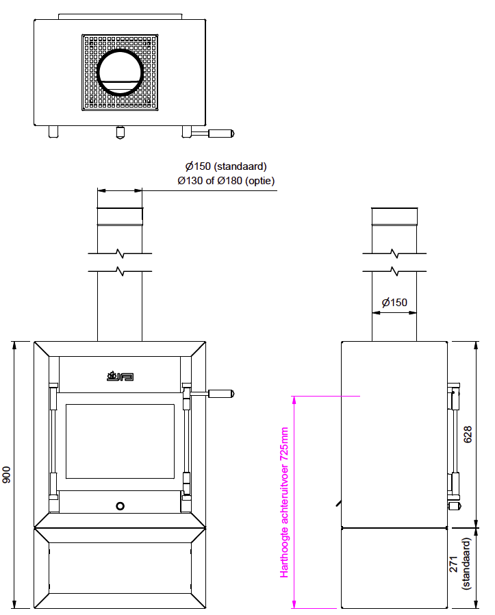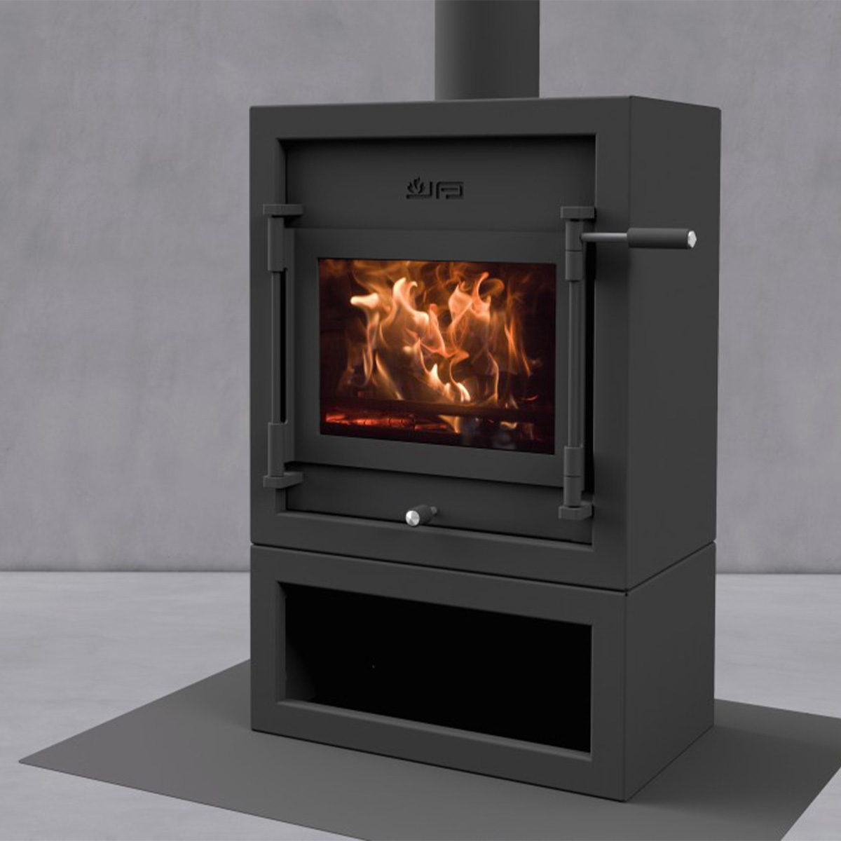 De hoogte van de kachel wordt bepaald door het onderstel. Deze heeft standaard een hoogte van 90 cm en is als maatwerk in iedere afmeting verkrijgbaar. Dat geldt voor zowel de hoogte als de breedte, het onderstel kan dus ook breder dan de kachel worden geleverd waardoor er een soort plateau wordt gecreëerd. Daarnaast kan de kachel kan zowel als front en als doorkijkmodel worden geleverd. De mogelijkheden zijn eindeloos bij de Kwadraat serie!