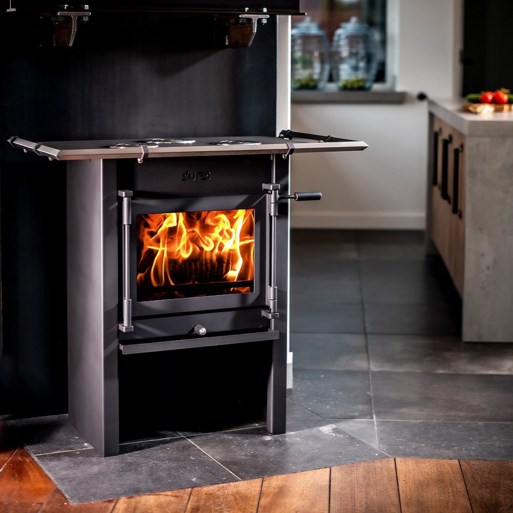 Leuk en authentiek, koken op houtvuur. Wanneer u gebruikt maakt van de achteraansluiting heeft u drie kookpitten tot uw beschikking. Leuk voor in de woonkeuken en natuurlijk in serre en veranda. Kijk ook eens naar de leuke accessoires zoals de ketel en bakpan.